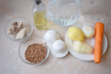 Tan satisfactorio y rico.  Reúne a toda la familia en la mesa.  La sopa de trigo sarraceno con pollo es muy sencilla de preparar, incluso un ama de casa novato puede hacer frente a ella.  Este es un primer plato de todos los días delicioso y nutritivo.  Para una opción más dietética, se puede cocinar sobre filete de pollo.